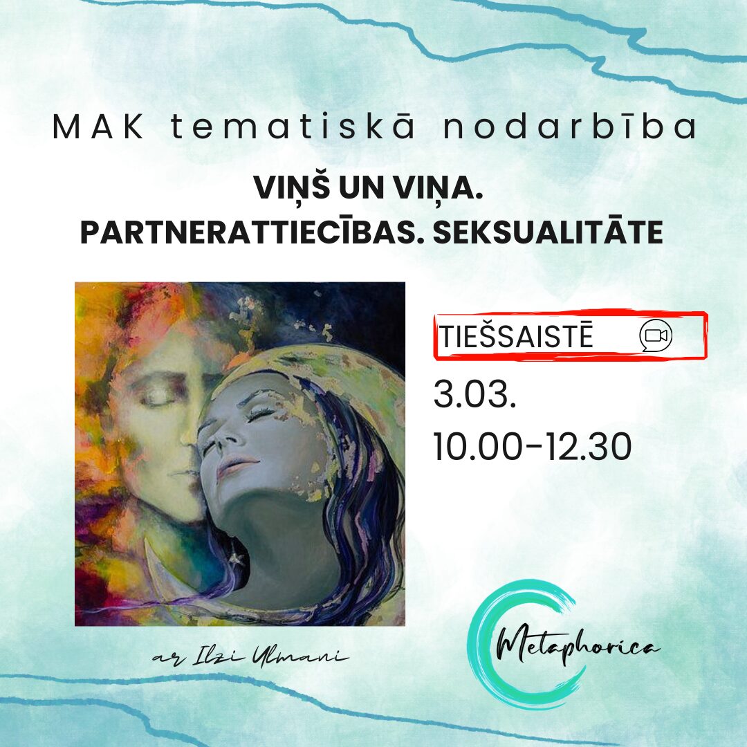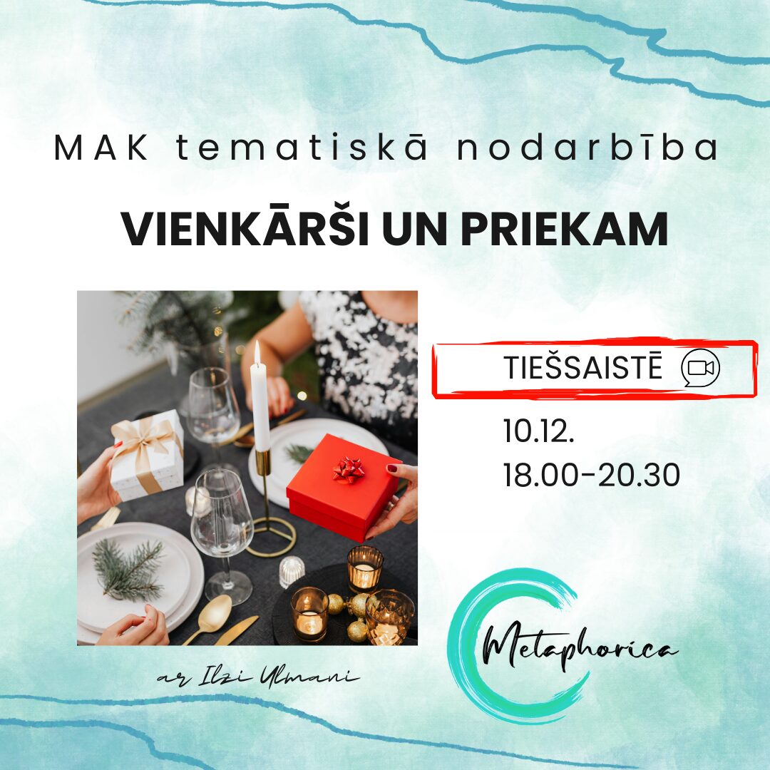 !Dalībai tematiskajās grupās vēlamas pamata zināšanas darbā ar metaforiskajām kārtīm, jo MAK pamatprincipu izklāstu nodarbība neiekļauj.Dalības maksa prakses nodarbībā: 25 eur.