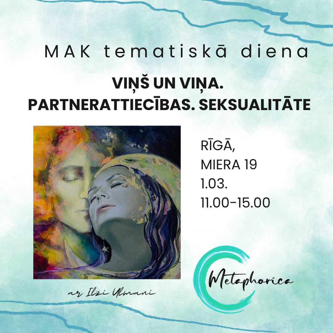 !Dalībai tematiskajās grupās vēlamas pamata zināšanas darbā ar metaforiskajām kārtīm, jo MAK pamatprincipu izklāstu nodarbība neiekļauj.Dalības maksa tematiskajā dienā: 40 eur